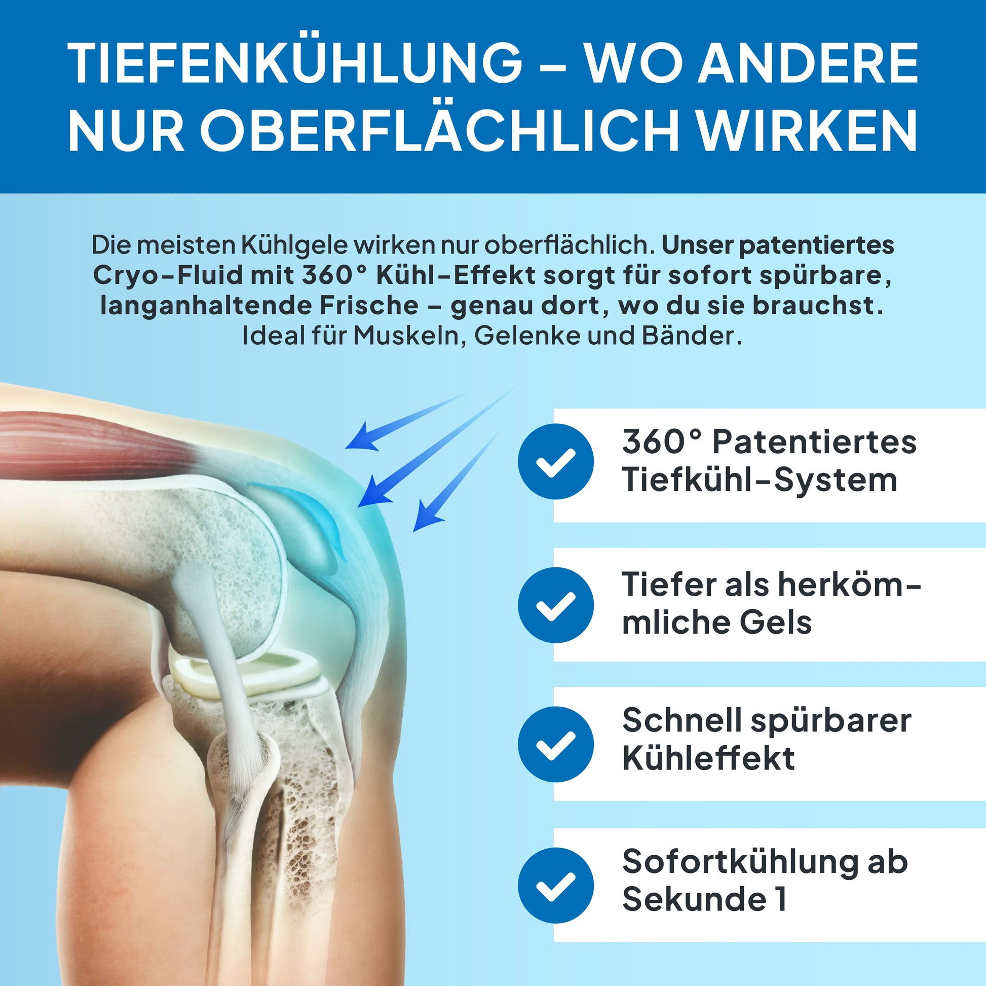 Außerdem ist Kühlung mit Cryo Fluid ideal, um die Regeneration nach hartem Training oder Wettkampf zu unterstützen.